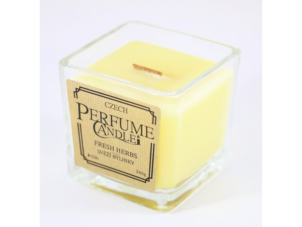 Vonná svíčka s dřevěným víčkem 8x8cm / 240g.